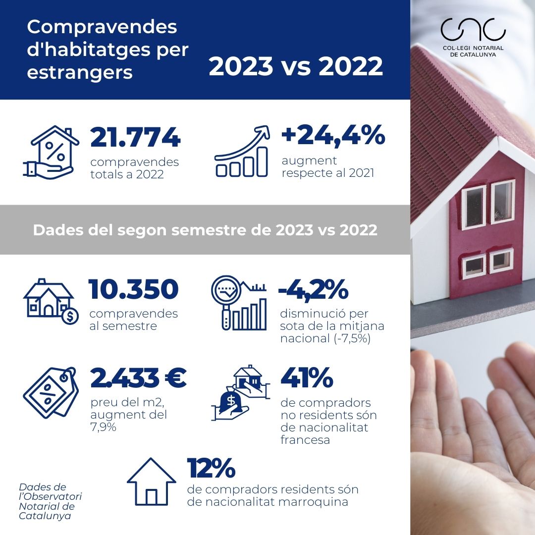 - Les dades de l’Observatori Notarial de Catalunya destaquen l’evolució del total de compravendes d’habitatges per estrangers en la comunitat catalana en l’última dècada, on es registra un augment del 173,9%
