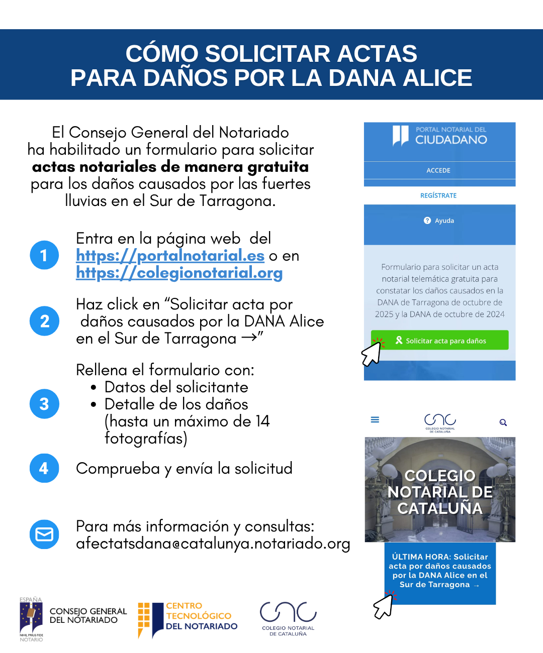 Para más información y consultas, los afectados se pueden dirigir al Colegio a través del siguiente correo electrónico: afectatsdana@catalunya.notariado.org